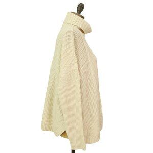 Joseph A Turtleneck Sweater Top M Boxy Cable Knit Oatmeal Heather NEW Tag B90