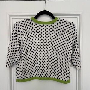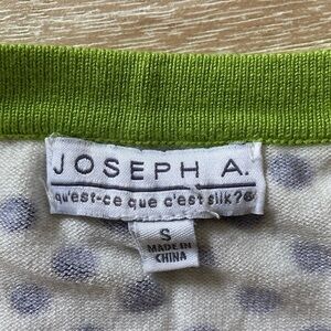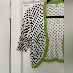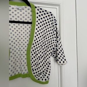 Joseph A. White Navy Polka Dot Short Sleeve Cardigan Green Trim Small Soft Knit