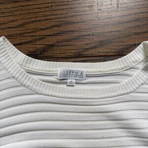 Joseph A White Ribbed Knit Top Button Shoulder Short Sleeve Sweater Style Sz M