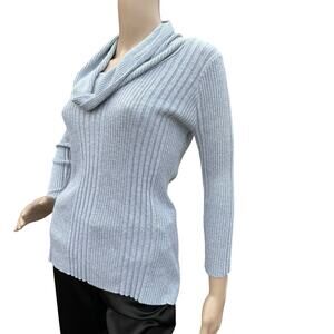 Joseph A Women Glittery Gray Rib Knit Long Sleeves Cowl Neck Pullover Sweater S