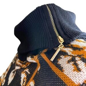 Elevate your wardrobe with this stunning Joseph A. turtleneck sweater. The black, mustard, and white color floral grid pattern paired with gold toned zippers on the neckline make for a classic and chic look. The tight-knit rayon material with a straight hem and long sleeves is perfect for the fall, winter, and spring seasons. This pullover sweater is easy to style, fitting relaxed for a comfortable wear. Hand wash for garment care.