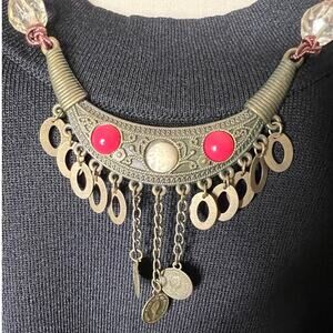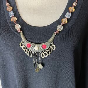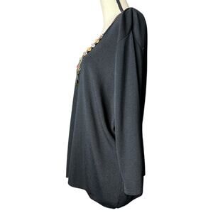 Joseph A. women's fine knit sweater in black with an attached necklace, size 1X