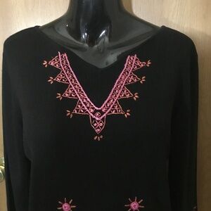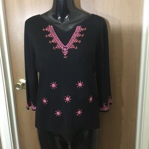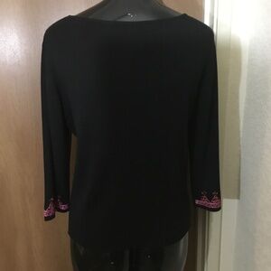 Joseph A. Women’s L Black Pullover Sweater Pink Embroidered 3/4 Sleeve