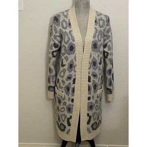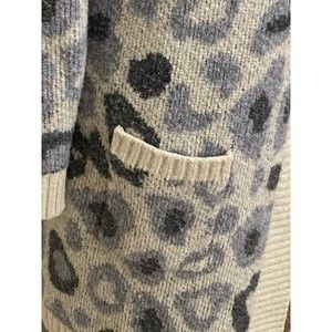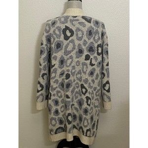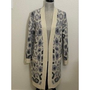 Joseph A Women's ivory/Grey long Sleeve Leopard Print Open Front Cardigan Size Medium with pockets.