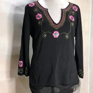 Beautiful sweater - finely knit - floral and sequins embellishment.