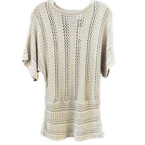 Joseph A top crochet knit tan short sleeves Medium FIRM on PRICE NWT