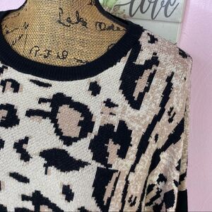 Joseph A. Leopard Animal Print Stud Fitted Sleeve Sweater Beige Black Large