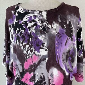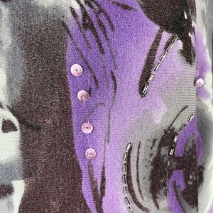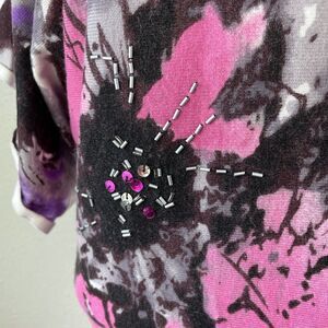 Colorful and fun watercolor design on this top by Jospeh A. Featuring beaded and sequin embellishments. It measures 19 inches armpit to armpit and 24 inches in length.