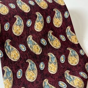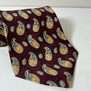 Elevate your style with this elegant paisley patterned tie. Featuring rich burgundy tones, it's perfect for any formal occasion.