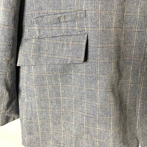 Joseph Abboud Blue/Gray Beige Plaid Dual Vent Linen Cotton Blazer Jacket Men's Size XXL