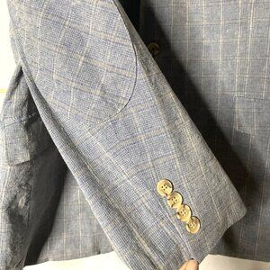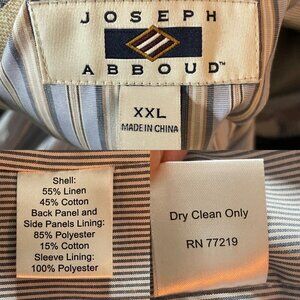 Tags: men's blazer, linen cotton blend, Joseph Abboud jacket, plaid blazer, formal wear, blue blazer XXL, professional jacket, tailored fit, men's formal jacket, two-button blazer, classic design, lined blazer, dual vent, sport coat, checker, striped, stripes, paisley, plaid, patch elbows
