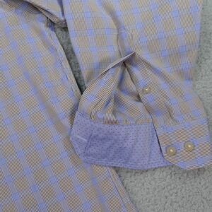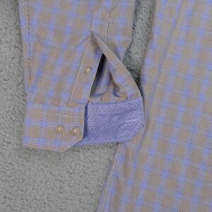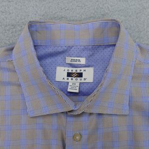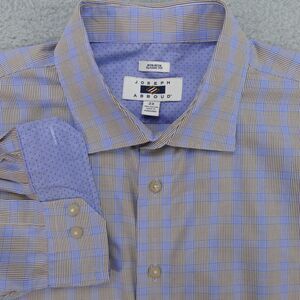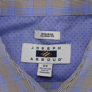 Joseph Abboud Button Up Shirt Mens 2XL Brown Blue Plaid Cotton Long Sleeve