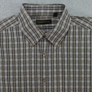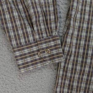 Joseph Abboud Button Up Shirt Mens Large Brown Beige Plaid Long Sleeve