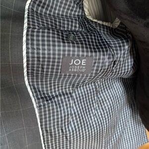 Refined charcoal blazer with a subtle windowpane pattern. Ideal for business or formal events.