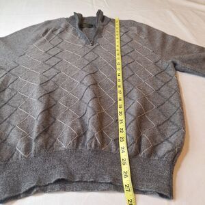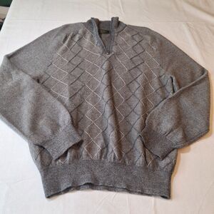 Joseph Abboud Grey Diamond Knit Alpaca Wool Quarter Zip Sweater Academia Size M
