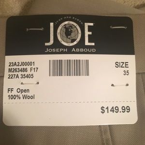 Brand new, never worn, un-tailored Joseph Abboud dress pant in Tan. Size 35. Unhemmed. Modern fit. Machine washable. Bought by mistake and can no longer return. My loss is your gain!