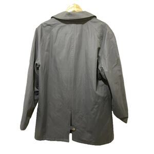 Quilted on one side, solid on the other with pockets on both sides button up closure with vent in back button enclosure