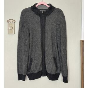 Joseph Abboud L Knit Cardigan Full Zip Sweater Gray Wool Blend Pockets Mens Fall
