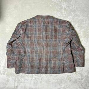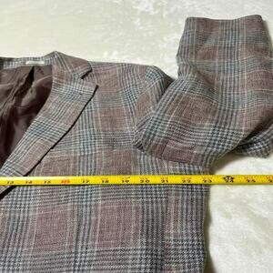 Joseph Abboud Linen Blazer Men's 44R Gray Rose Quartz Plaid Jacket Elevated Wool