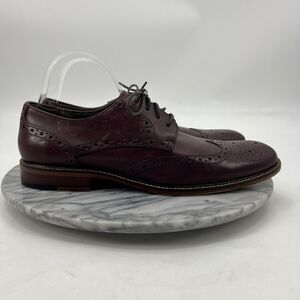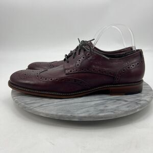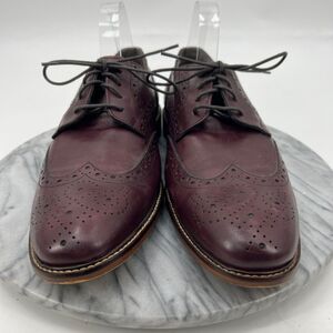 Joseph Abboud Mens 10 Dress Shoe Eggplant Wingtip Oxford Brogue Perforated