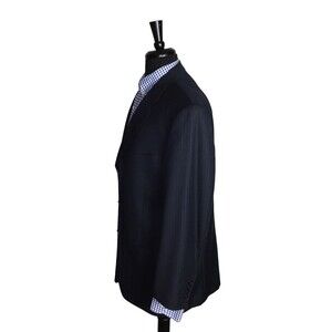 Joseph Abboud Mens 42R Super 120s Wool Blue Striped 2PC Suit Pleat Pants 36x29