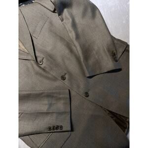 Joseph Abboud Mens 44L Golden Tan Blue Birdseye Silk Wool Blazer Sport Jacket