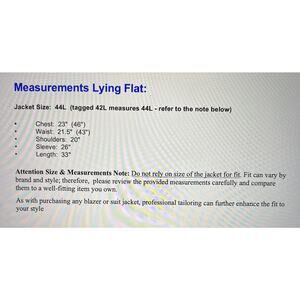 Jacket Size: 44L (tagged 42L measures 44L - refer to the note below)