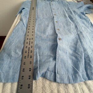 Joseph Abboud Mens Blue Striped Short Sleeve 100% Linen Button-Up Shirt Medium
