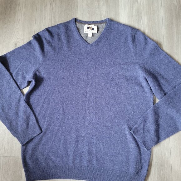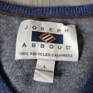 Joseph Abboud Mens Blue V-Neck Sweater L 100% Recycled Cashmere
