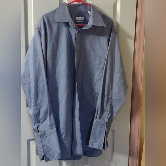 This is a pre-owned men's regular fit button down collared shirt. It is long sleeve. Neck size 17 and 1/2. 32/33.