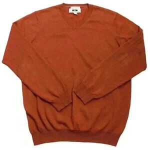 Joseph Abboud Mens Large 100% Extra Fine Merino Wool Burnt Orange V-Neck Sweater