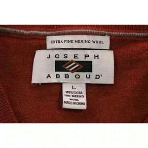 Elevate your wardrobe with this designer Joseph Abboud men's pullover sweater in a trendy burnt orange color. Made of 100% extra fine merino wool, this sweater is not only lightweight and breathable, but also the perfect choice for fall, winter, and spring seasons. The tight-knit style and V-neckline give it a modern and preppy look, suitable for any occasion.This sweater is available in size L, and is an excellent addition to any wardrobe. The knit material and fabric type provide a classic touch, while the long sleeve design ensures warmth during the colder months. Shop now to complete your wardrobe with this essential piece.