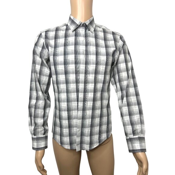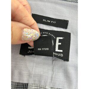 Joseph Abboud Men’s Shirt Button Down M Slim Fit Plaid Black Grey White Contrast