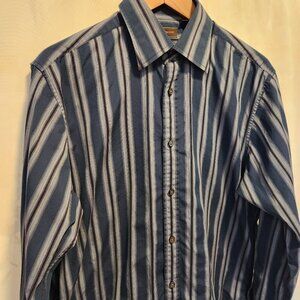 Joseph Abboud Men's Size M Blue and Black Striped Long Sleeve Button Up Shirt