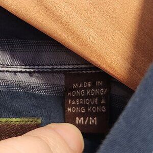 Men's size M, Joseph Abboud, striped button up shirt. Blue and black striped, long sleeve, no front pockets. 100% cotton, made in Hong Kong, machine washable.