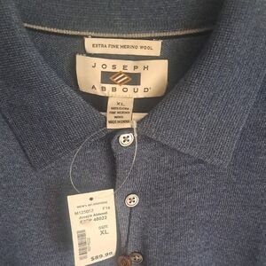 Premium 100% extra fine merino wool sweaters by Joseph Abboud. Soft, lightweight, and great for layering. Classic style with a button placket, ribbed cuffs, and hem. All brand new with tags.
