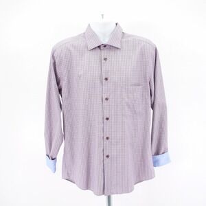 Joseph Abboud Non-Iron Large Brown Blue Check Flip Cuff Collared Dress Shirt