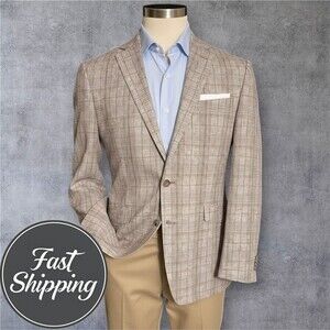 Joseph Abboud Plaid Navy Wool Sport Coat Blazer Suit Jacket - 44