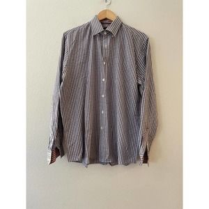 Joseph Abboud Size L Men's Plaid Button Down Shirt Flip Cuff Long Sleeve