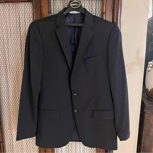 Worn once, in pristine condition. Dark gray, two button closure, has double slits in back, has three internal pockets. Fully lined. Non-smoking home.