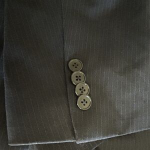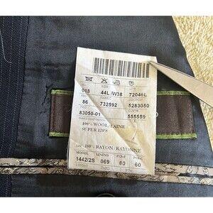 Look sharp and sophisticated in this Joseph Abboud two-piece suit. The black striped pattern and notch lapel add a touch of elegance to the ensemble. The jacket features a single-breasted cut with a two-button front button style and four-button sleeve button style. It is made of 100% wool fabric, ensuring quality and comfort. The jacket is also double-vented, providing ease of movement and ventilation. The suit includes a 38x30 pant with a 30-inch inseam. It has a Long jacket/coat length and a 44 Long size, perfect for any occasion. The suit is made in the USA and dry clean only. This two-piece suit is a timeless classic with a modern touch, suitable for any man looking to upgrade his wardrobe.