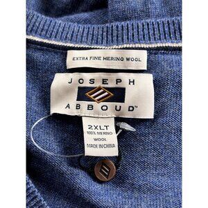 Joseph Abboud Sweater Extra Fine Merino Wool V-Neck 2XLT Blue Long Sleeve