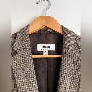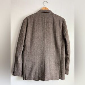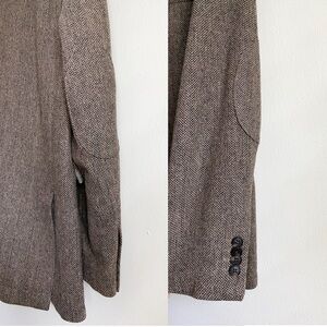 Joseph Abboud Tweed Herringbone Wool Blazer Sport Coat Jacket Brown Elbow Patch