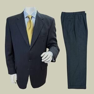 Joseph Abboud Two-Piece Suit Mens Charcoal Heavy Weave Cuffs and Pleats Sz 42 L