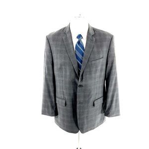 Joseph Abboud Wool 2 Button Gray Plaid Blazer 40S Or Slim 42S