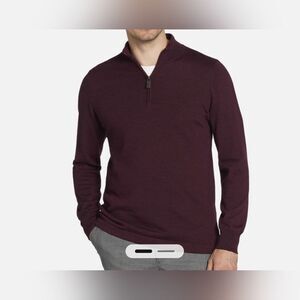 Joseph Abboud XL Burgundy/Gray MERINO WOOL Blend 1/4 Zip Knit Lslv Men Sweater