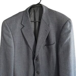 Joseph Abboud blazer suit jacket size 42L 100% wool houndstooth pattern blue tan