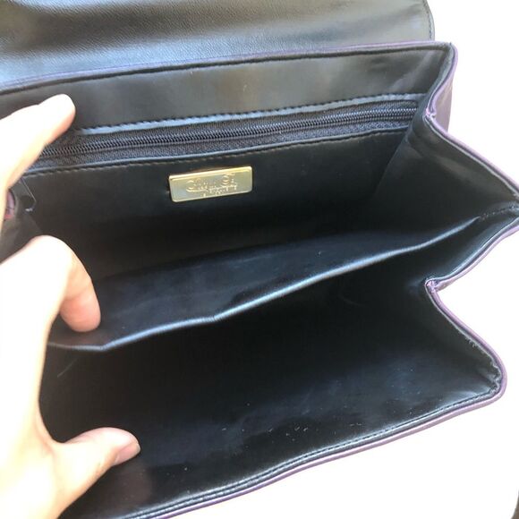 Vintage Joseph B Exclusive New York in a deep purple leather satchel with a gold color metal handle and hardware and removable cross body strap. Magnetic snap closure. Excellent vintage condition. The bag has great structure to it despite its age. Recently cleaned and conditioned. Can be used as a handbag with the metal handle or as a cross body with the longer strap that is removable.
