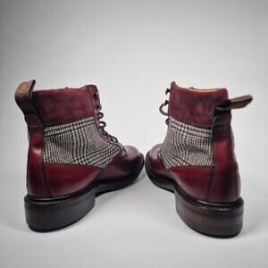 Joseph Cheaney Hope R Burgundy Derby Boots Leather Prince Wales Check US 9 New