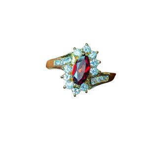 Joseph Cleary Gold Tone Ring Marquee Cut Red Garnet Bypass Statement JC